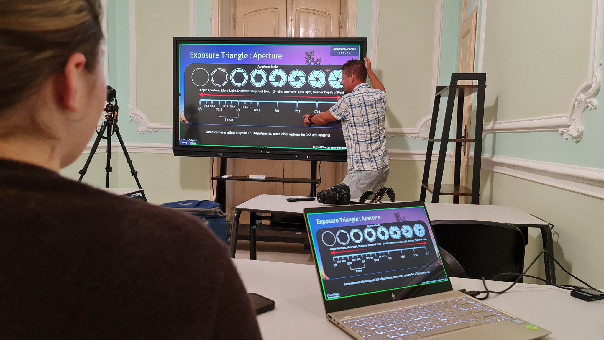 Here we see Craig Rogers, our Photography teacher outlining the importance of aperture and "F" values when composing your shots.